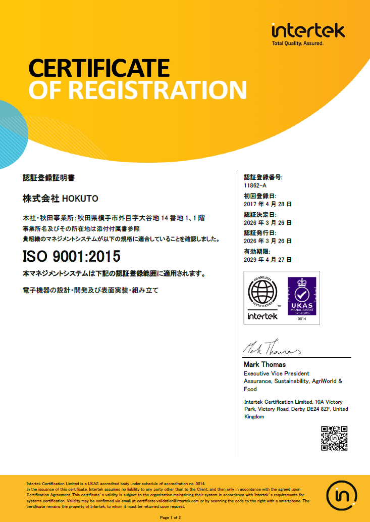 株式会社HOKUTOは、地域№1の総合製造サービス企業を目指すべく、環境負荷の軽減を目的として『より早く、より確実に、より丁寧に』を基本として、高品質な電子機器製品のモノづくりサービスを提供し、絶えず『御客様満足の向上』を目指します。